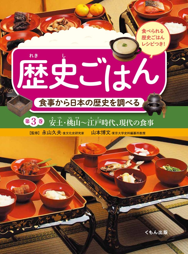 「昔の人の食事は、どんなふうだったのかな?」「どんな料理を食べていたのかな?」と子どもたちが興味をもつ“再現料理”を入り口にして、食材や献立、食器などから産業、流通、政治、税制、文化などの歴史の様ざまな事象に結びつけ、多角的・多面的に歴史を考える資料を提供するシリーズです。