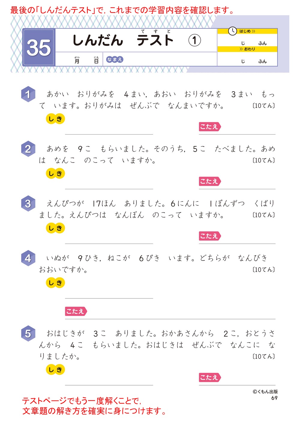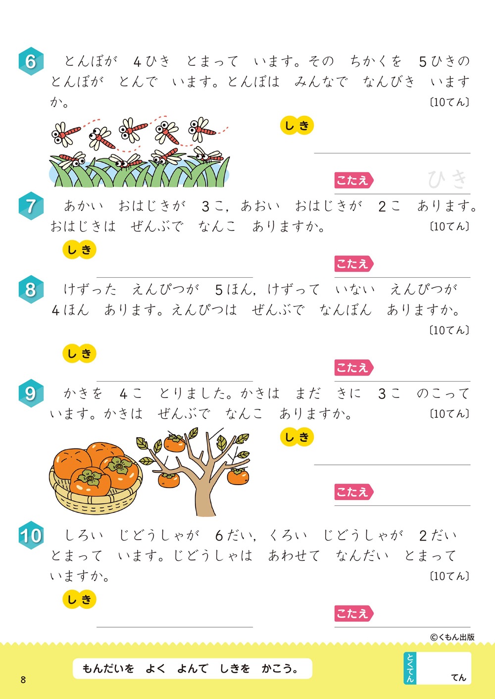 正しく式をたて、答えを求める力が身につきます。