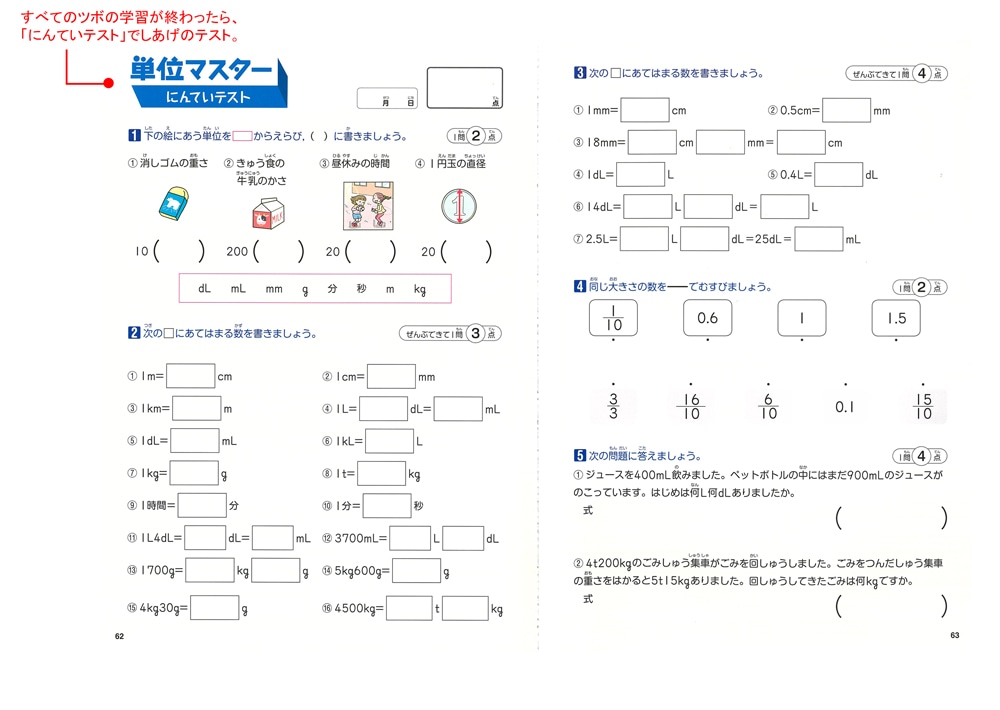 高学年にむけて、小学校1・2・3年の単位の学習をおさらいしたい学習者に最適です。