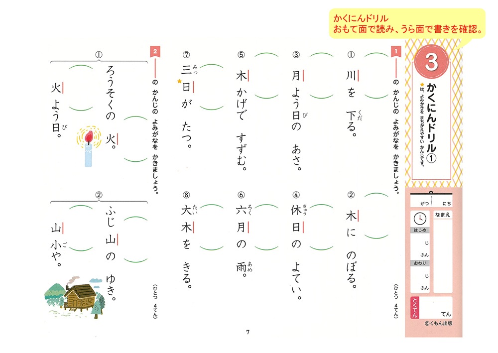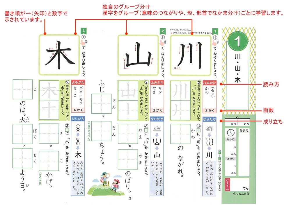 漢字を覚えやすいグループごとに、身近な用例の中で練習。