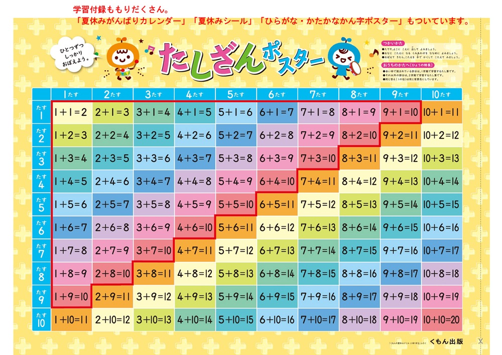 ⑥学習ふろくの「ひらがな・かたかな・かん字ポスター」「たし算ポスター」を壁に貼り、自然と目に入る状態にすることで、定着度を高めましょう。