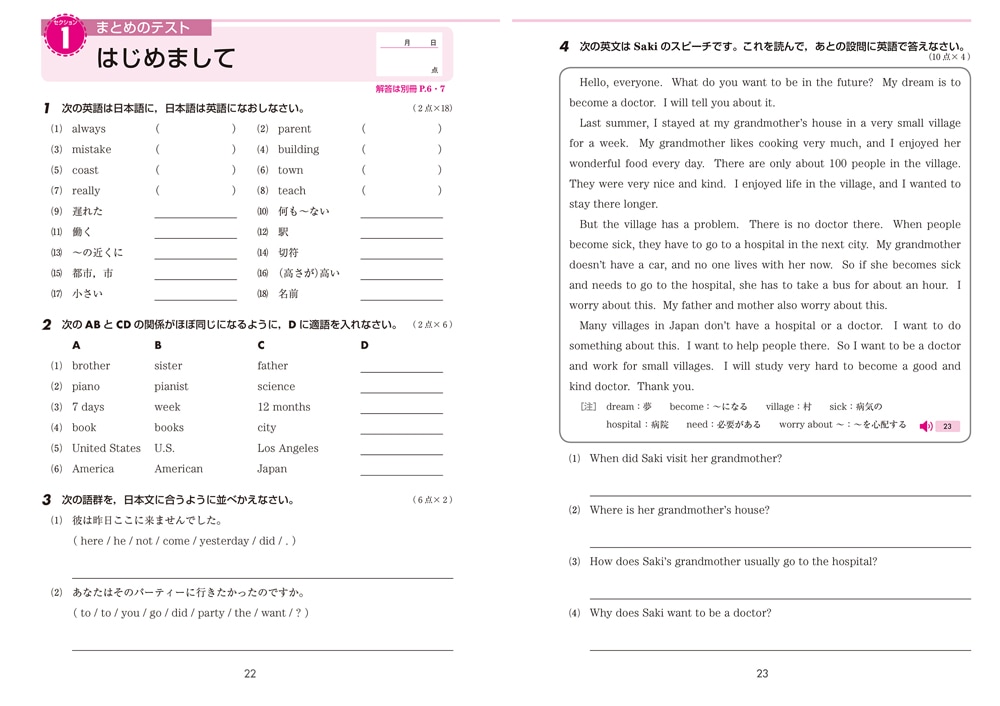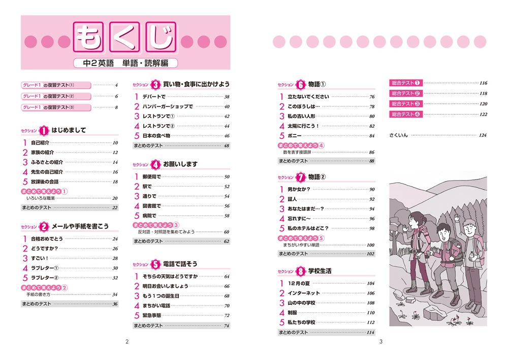 ◇「電話で話そう」「学校生活」「物語」など、場面やテーマごとに学習していくので、意味のまとまりごとに効率よく単語・熟語を身につけられます。