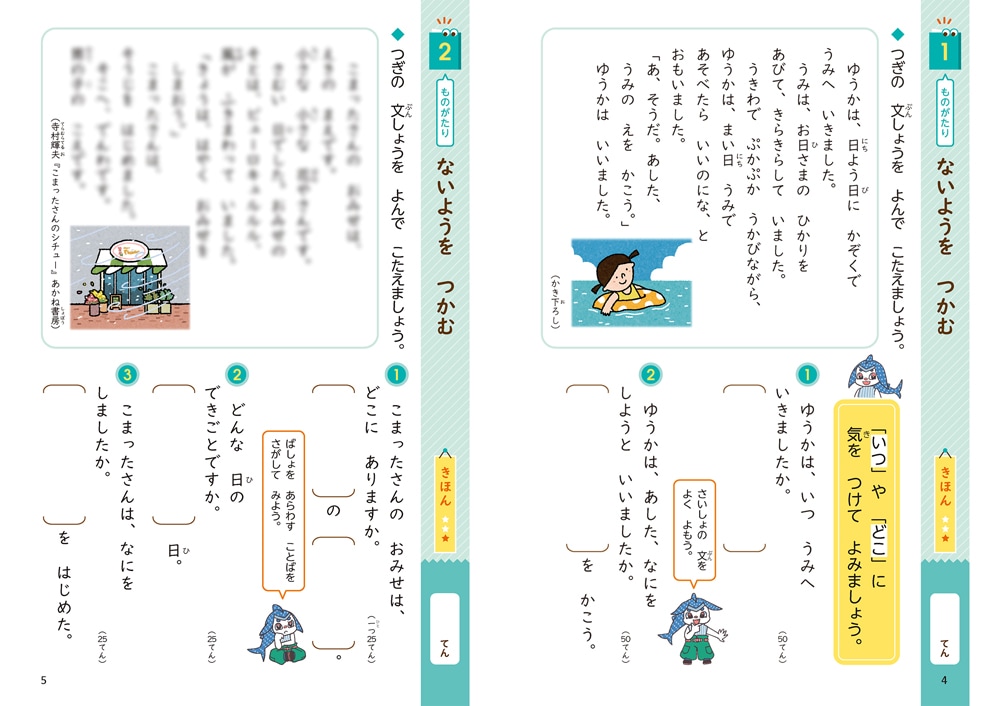 本シリーズでは、それぞれの学年の学習内容に応じて、物語と説明文を中心に、幅広い分野で読みごたえのある長い文章を集めました。特に、中学年以上では、複数の資料(グラフや図、ポスターやパンフレット、会話文など)から必要な情報を読み取る練習にも取り組むことができます。