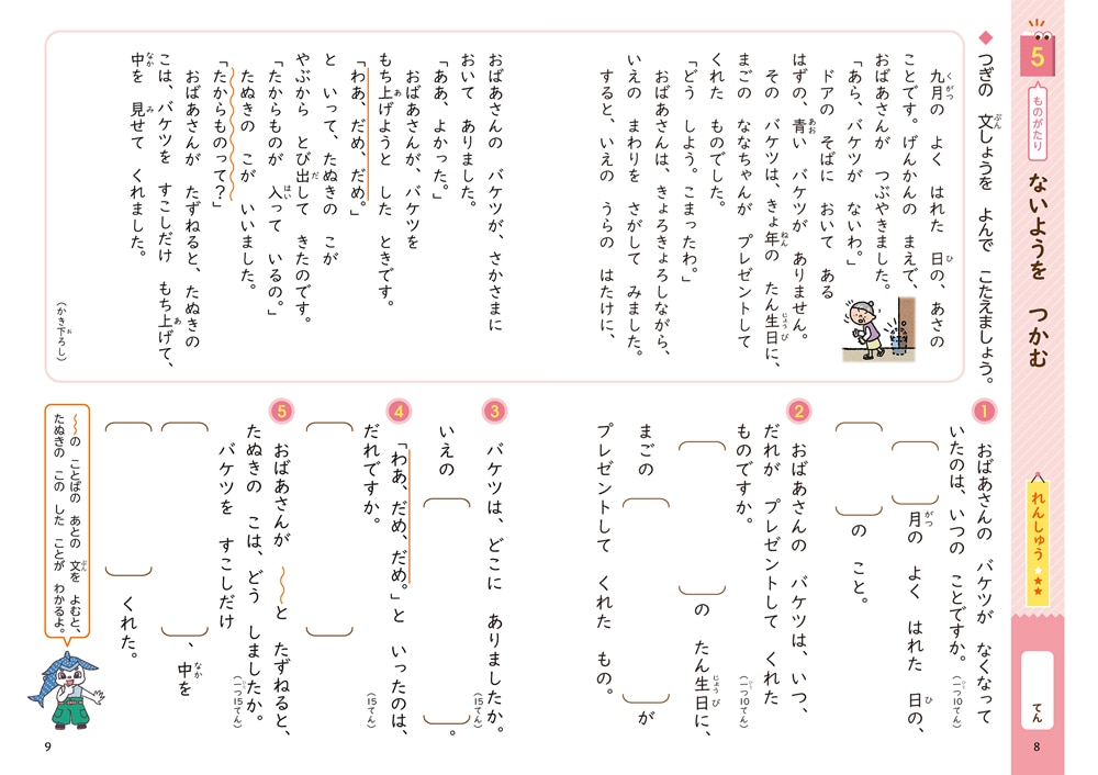 一年生がおさえておきたい学習テーマを集めています。テーマごとに、文章読解のポイントを示していますので、ポイントをおさえながら、練習に取り組めます。予習用にも復習用にも使えます。
