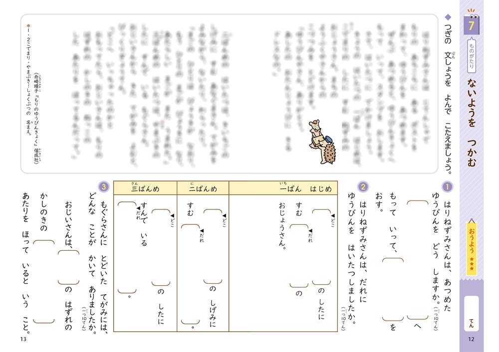 国語の文章読解力を、「基本」⇒「練習」⇒「応用」の3ステップできたえます。