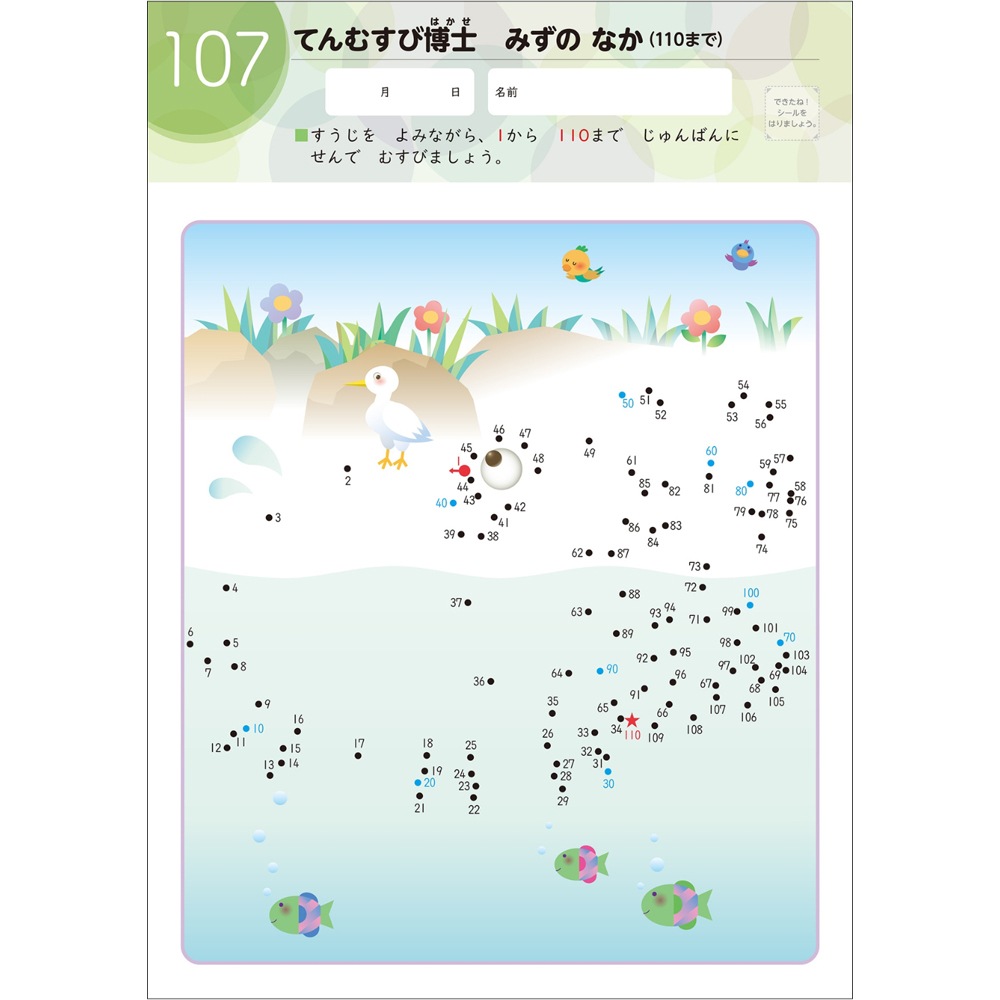 お手本どおりに点をつないだり、数字の順に点をつないだりしていくうちに、集中力、図形の認識力、数唱力がアップし、創造性につながる「のめりこむ力」がのびる!