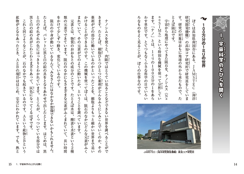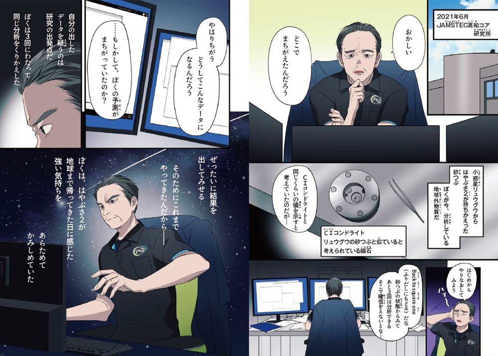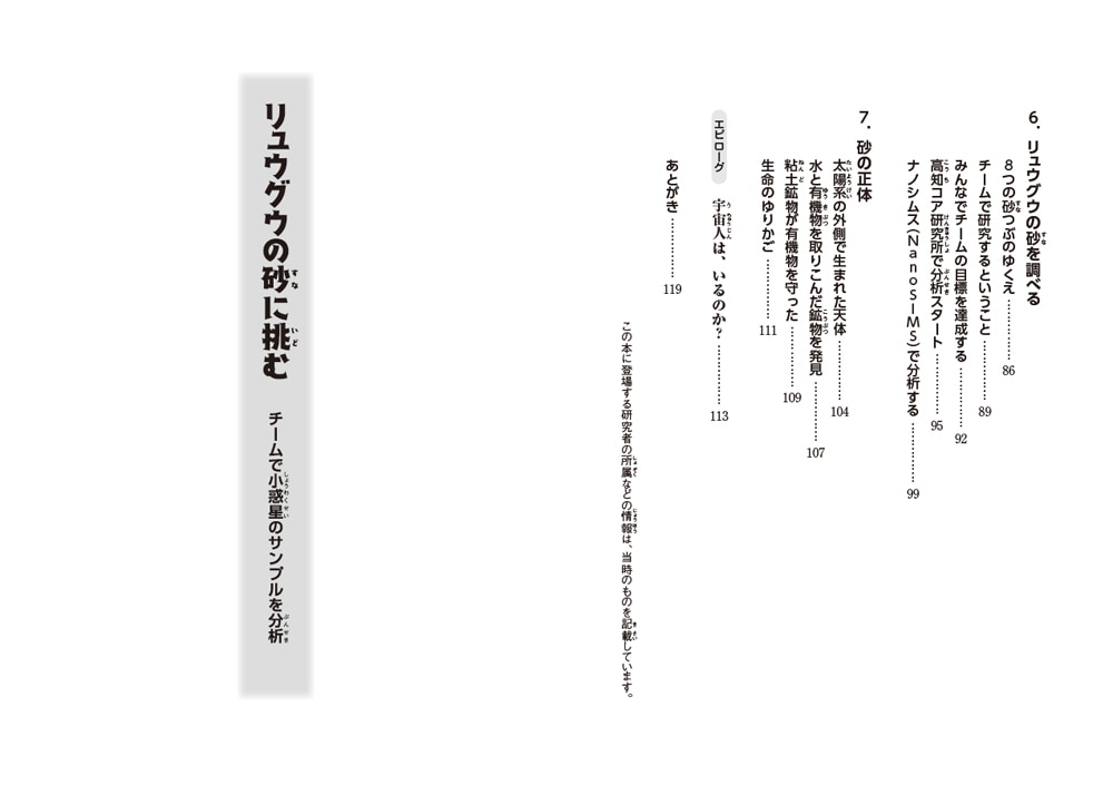 いろいろな大学や研究所から、さまざまな分野の研究者が集まって、貴重な砂の分析がはじまりました。そして最強チームが見つけたのは。〝生命のゆりかご〟だったのです。