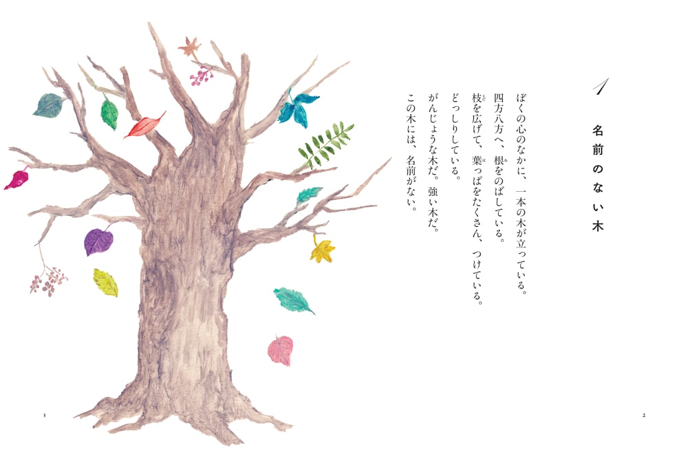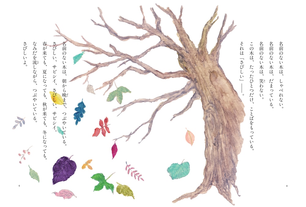 小学3年生の若葉くんは、いつも図書室で本を読んでいる。友だちに誘われても、いっしょに遊んだりはしない。だって、ひとりでいるのが好きだから。若葉くんの心のなかには、1本の木が立っている。木には名前はないけれど、たったひとつだけことばを持っている。そのことばは「さびしい」。木がそんな言葉をつぶやきだしたのは、1年前のあの日、エンジェルがいなくなってしまったから……。