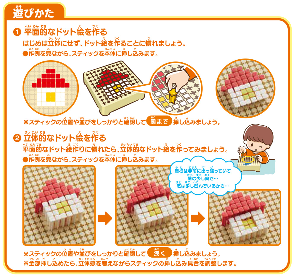 スティックを挿して立体的なドット絵作り!創造力や立体把握能力を養う!