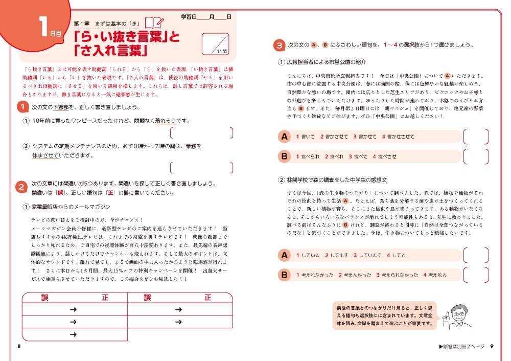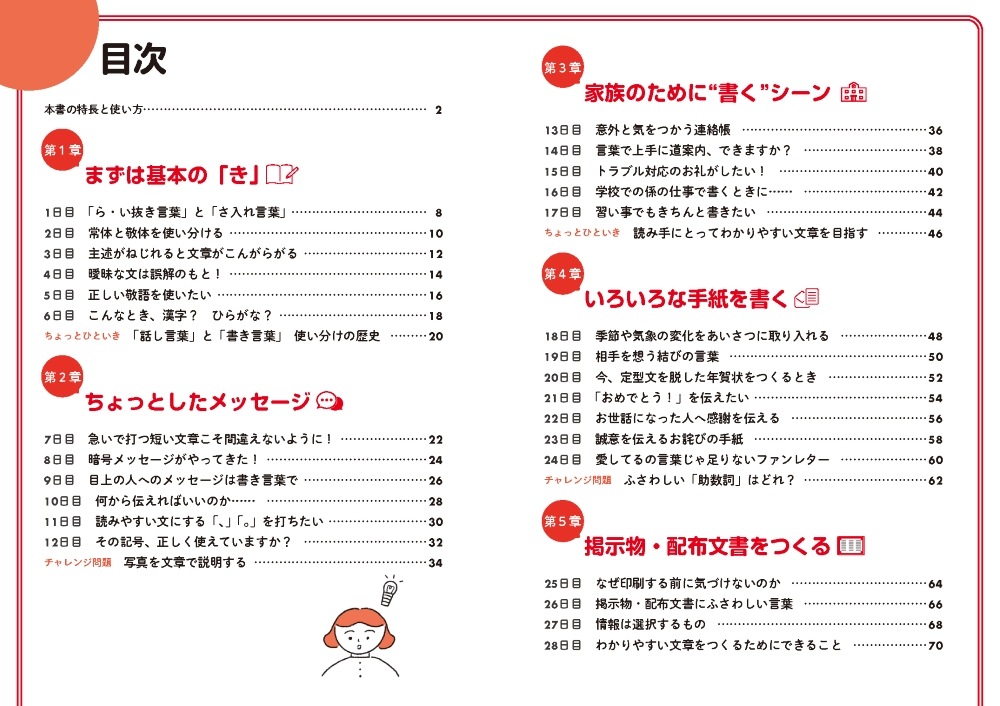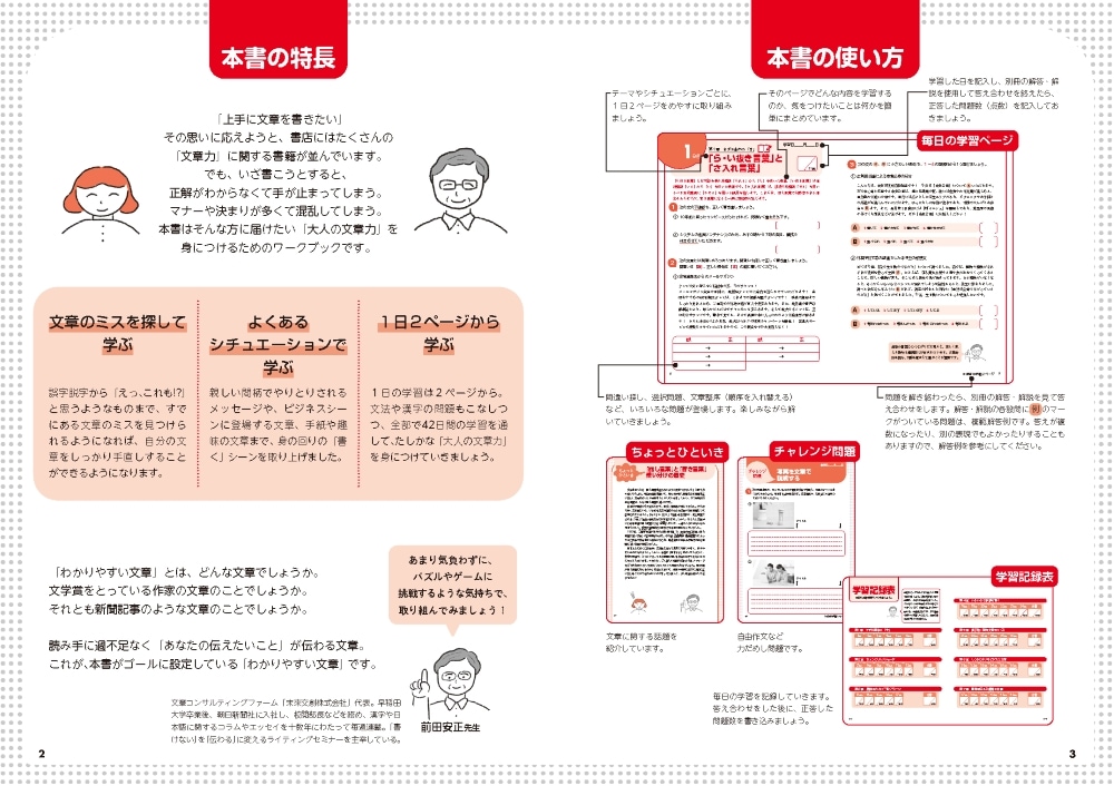 社会生活を円滑に営むための文章のコツを、親しい間でのやりとり、ビジネスシーンなど、よくあるシチュエーションで、楽しみながら解いて身につけていくワークブック。敬語表現・主語と述語の関係・話し言葉と書き言葉・適切な慣用表現・まちがえやすい表現など、確かめておきたい文章のコツが満載です。