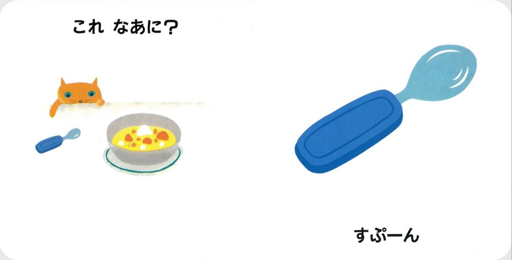 見開き展開で、お子さまが日常使うものの名前を認識します。