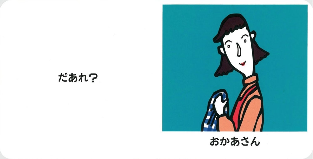 見開き展開で、「おとうさん」「おかあさん」など、家族の名称を認識します。