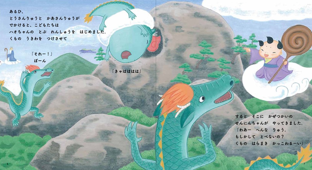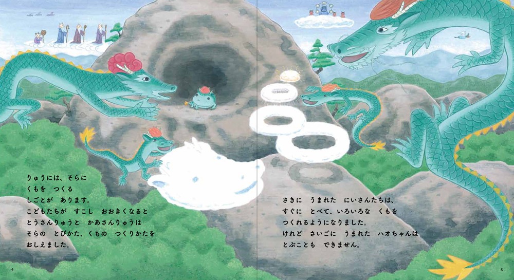 岩山でうまれた龍のきょうだいの末っ子、ハオちゃんは、龍なのにまんまるで、まだとべません。